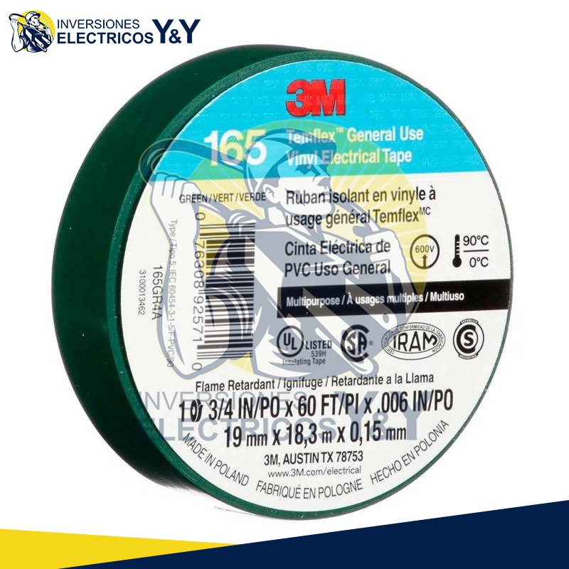 CINTA AISLANTE TEMPLEX 165 VERDE 3M